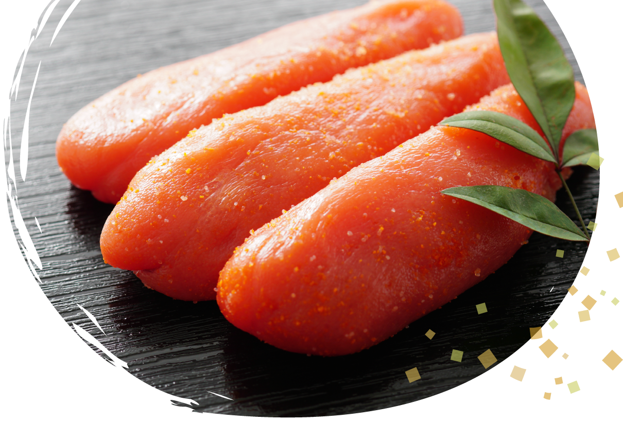 明太子は国産にこだわり、栄養も鮮度も一般的な製品とは一線を画しています。明太子のプチプチとした食感や、お子様も食べやすいマイルドな辛さが特徴で、贈答用の高級明太子としても高い評価をいただいております。その名声は口コミで広がり、福岡の逸品として広く知られる存在へと成長いたしました。